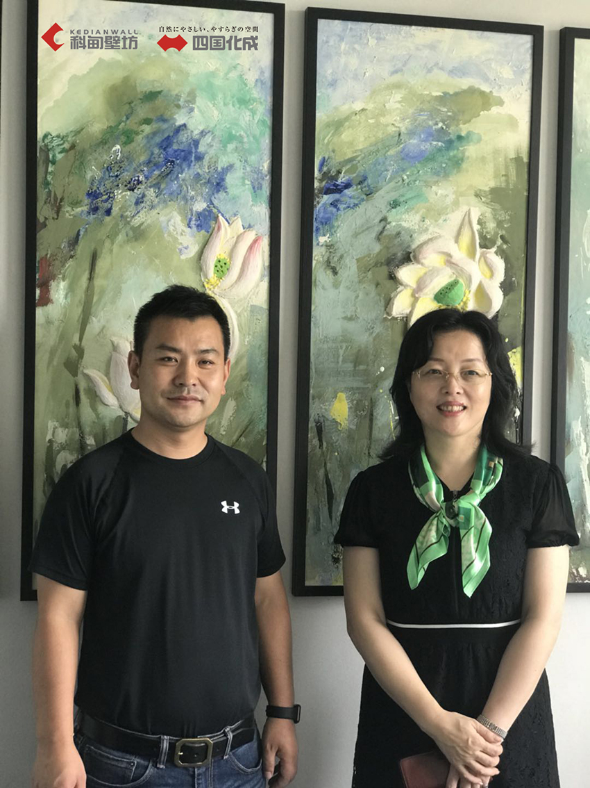 此次的访问中,陆飞灵女士也与科甸企业董事长朱朝林先生探讨关于四国化成硅藻泥在中国市场的销售情况,陆飞灵女士就目前全国市场已有76个网点的基础上,对如何稳健而高效的加快步伐布局全国网点,形成强有力的品牌效应,在如何拓展销售通路这一方面提供了独到且宝贵的建议。陆飞灵女士也提出,对于这样一个新兴、无害且长寿的墙面材料,是可以计划性地将四国化成硅藻泥产品,纳入诸多一线装饰公司的材料库,不仅能帮助装饰公司关注于社会环保,更能让更多业主拥有多元选择时,也能体会到四国化成硅藻泥的产品优秀。