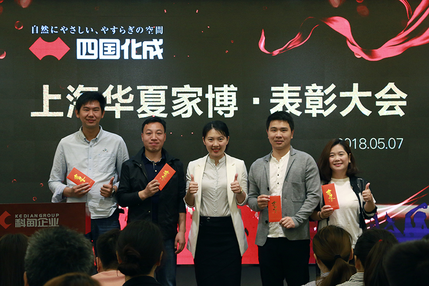 随着热火朝天的华夏家装博览会结束,今日的温度悄悄降低,但四国化成的热情仍高涨着,为期3天的展会,让更多人认识四国化成硅藻泥的美好,一一如实地反映在四国化成的惊人订单量上,面对这样傲人的成绩,也让四国化成中国区负责人朱朝林先生感动,决心透过表彰大会的方式,奖励的同时,让全员不要松懈,不单提供最好的产品,也要提供最好的服务,持续为四国化成这个品牌努力。