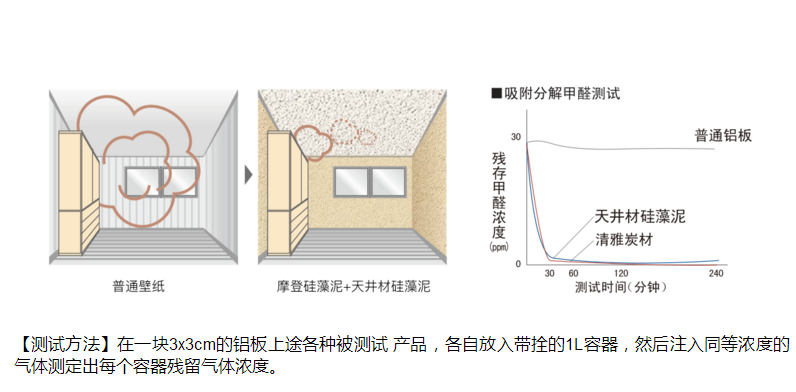 那么,就没有什么方法可以有效解决这一问题吗?其实,是有的。四国化成硅藻泥,使用历史悠久传统素材,以天然的硅藻土、川砂、沸石等多种无机材料为骨料,造就细腻的手感和高雅的质感。人们在使用了四国化成硅藻涂材的空间内,能够聆听自然的倾诉,能够感知自然的质朴,返璞归真,享受自然之美。经过试验,四国化成硅藻泥能够有效吸附甲醛,并分解成无害物质。