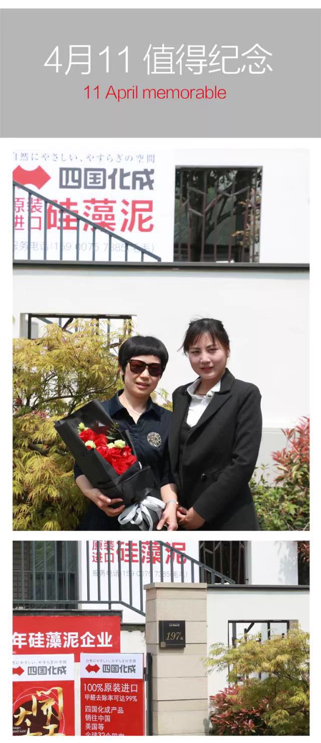 从2018年4月11日硅藻泥施工技师进场到7月11日,时隔短短的三个月,四国化成再度来到上海古北香堤艺墅。