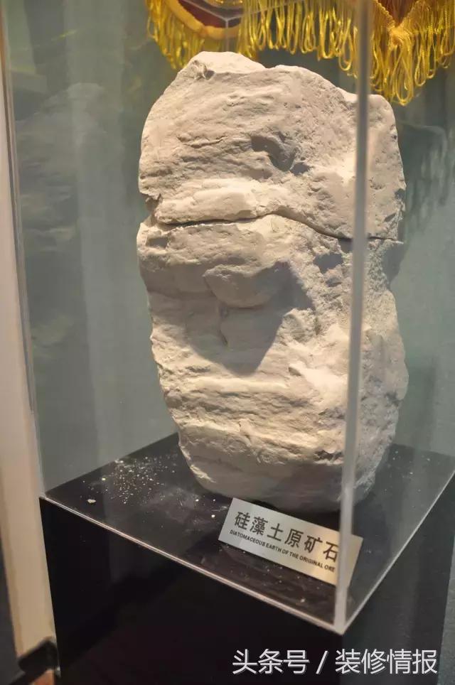 ▲看完了对材质、色彩、成品的展示后,编辑找到了真实的硅藻土原矿石,这类矿物经过加工后,就具备了消除甲醛、净化空气、调节湿度、释放负氧离子、防火阻燃、墙面自洁、杀菌除臭等功能。