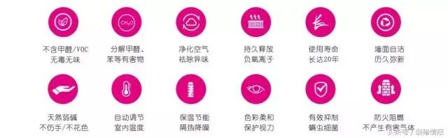 ▲尽管由于材质本身的特性,硅藻泥的功能众多,但仍可归类为6项优势:吸附分解甲醛、吸收分解异味、调节湿度功能、隔音吸音降噪、隔热隔温、完全防火阻燃。