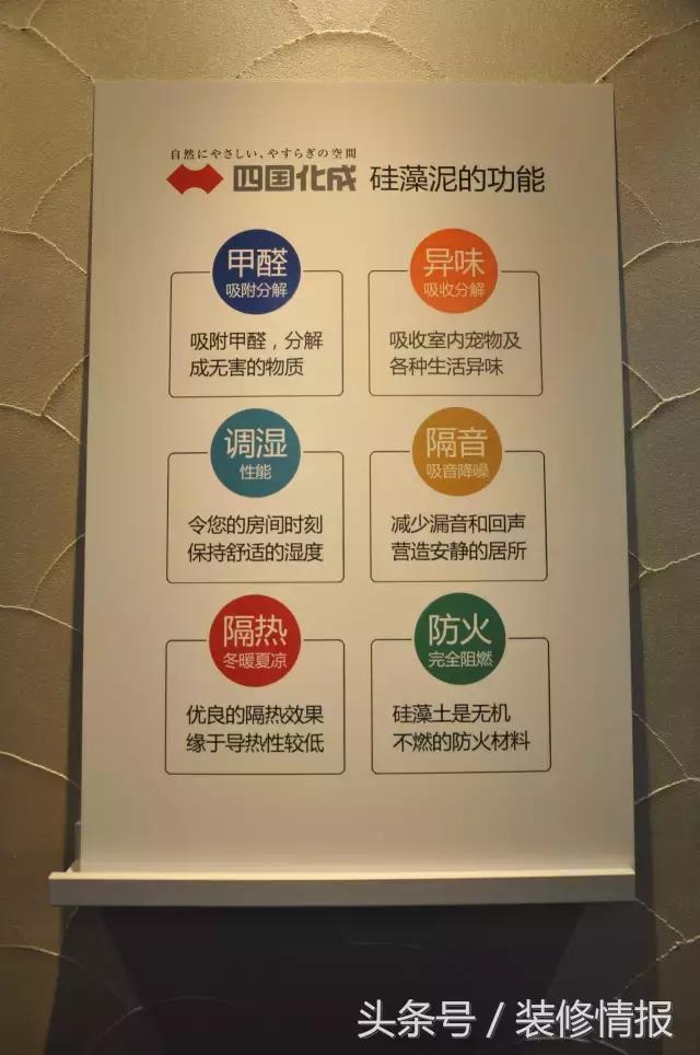 ▲展示四国化成硅藻泥的科甸建材董事长朱总告诉编辑:硅藻泥属于目前比较先进的室内装饰技术,能彻底解决装修污染和空气污染带来的一系列难题,目前中国地区的产品标准可以参考《硅藻泥装饰壁材》建材行业标准(JC/2177-2013)相应的文件与认证,也是必不可少的。
