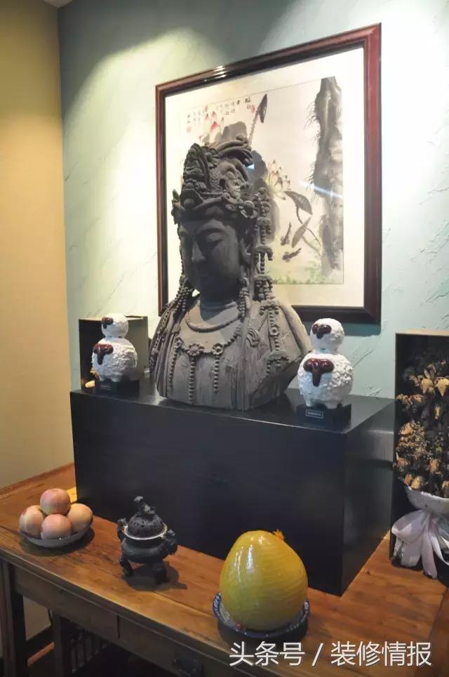 ▲浑厚的雕塑、精致的装饰画,远远望去,背景采用的是灰色墙砖?如果你也这么想,可就错啦!眼前的整面墙,甚至是整栋楼,用到的都是硅藻泥!