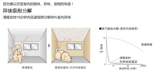 而四国化成硅藻泥有强大的异味吸附分解功能,其中的清雅炭材功能性更深。