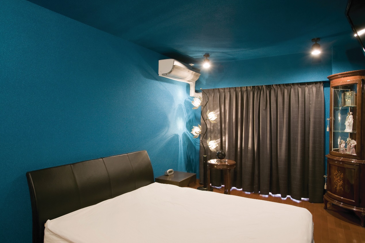 这个地中海风格的客厅,淡蓝色和白色的经典色调搭配,让我们好像在海边一样,呼吸着清新的空气。蓝色 的电视机墙和对面白色的客厅墙纸互相呼应,相得益彰,白色的落地窗使外面的世界看起来更加透明清澈,蜡烛 式的吊顶灯更是点睛之笔,像是把我们带回了古老的时代。