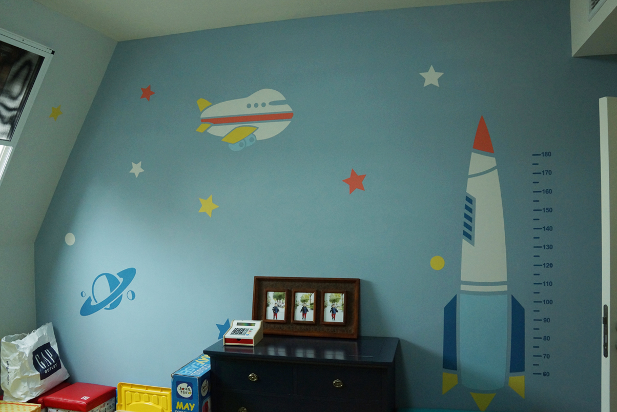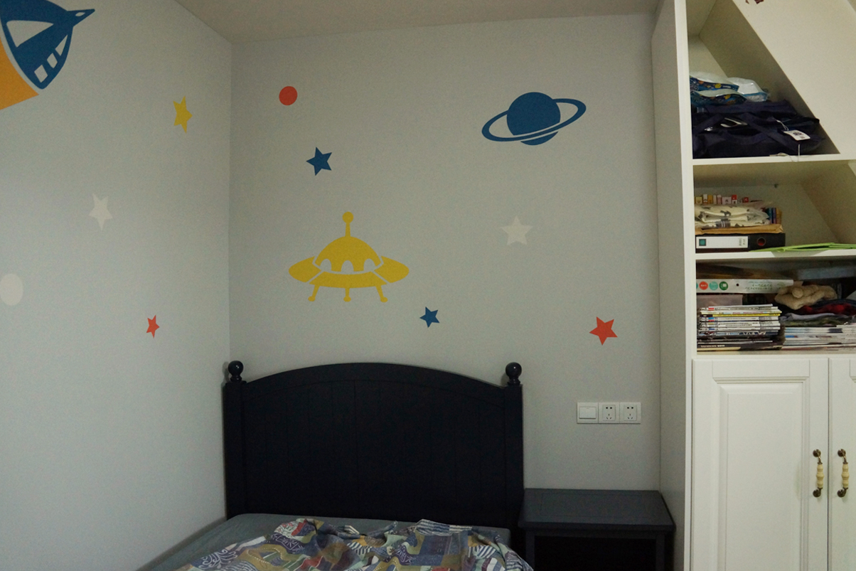 由于儿童想象力丰富,所以在儿童房的图案设计上我们选择了一些卡通,可爱萌趣的造型。